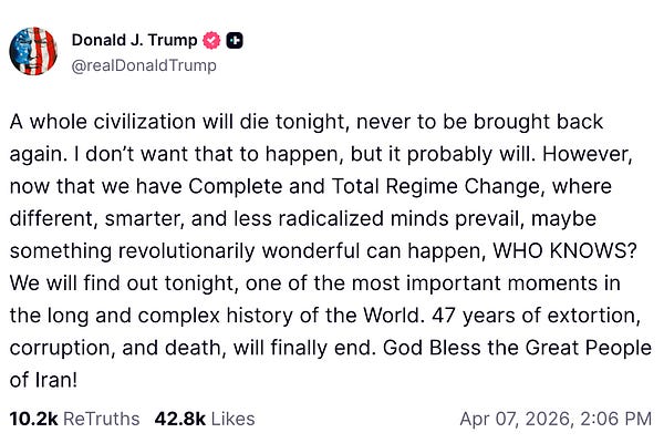 Trump: "A whole civilization will die tonight" if Iran does not reach a deal to open the Strait of Hormuz