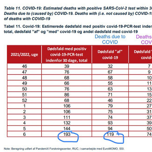 No, the appearance of “exponentially surging DEATHS not cases!!!” is in fact an artefact of “exponentially” surging cases. A vast number of people have Omicron right now. The people who were supposed to hang my new curtains have Omicron, many of my work colleagues have Omicron, and a lot of Danes who are dying of other causes have Omicron. (Weirdly, I do not have Omicron.)
